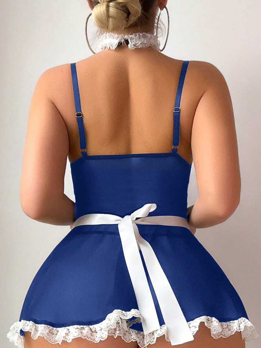 6pcs Sexy Maid Costume Set - Lace Mesh Skirt And Stockings