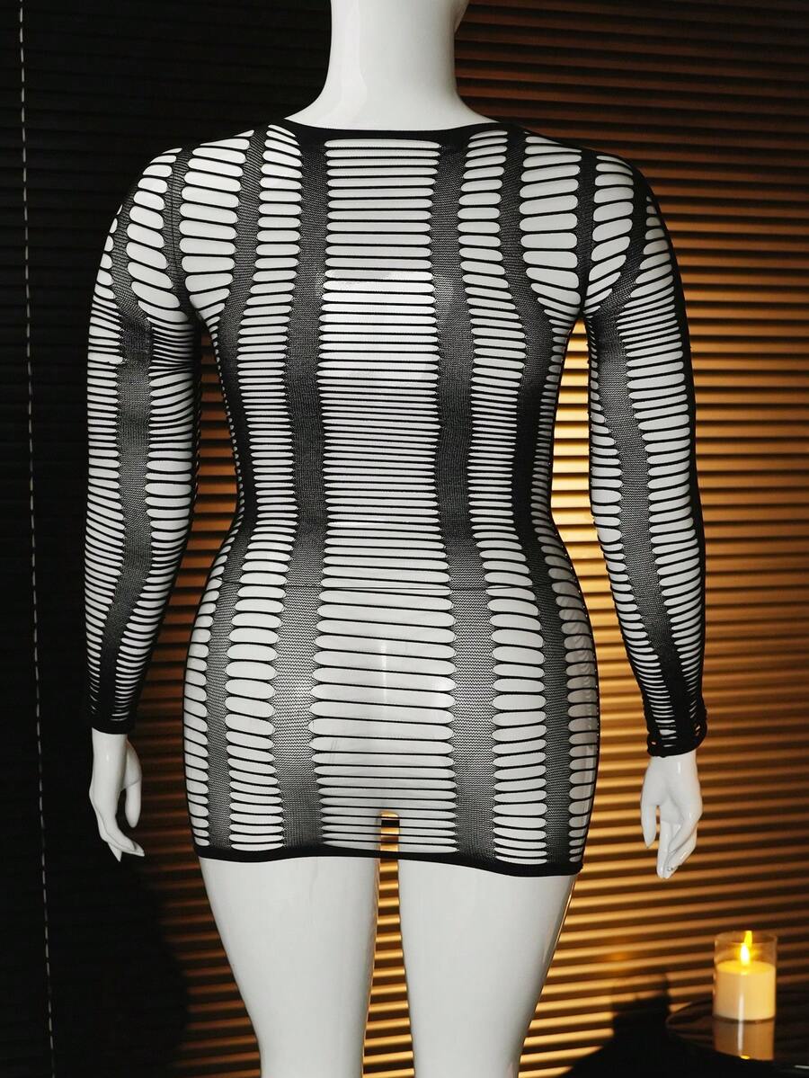1pc Women Plus Size Sexy Hollow Out Sheer Mesh Bodycon Skirt