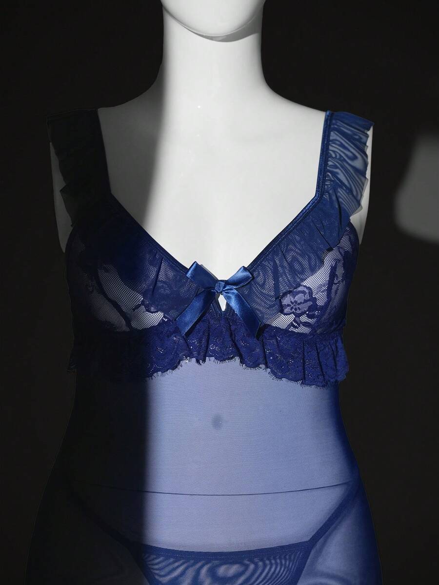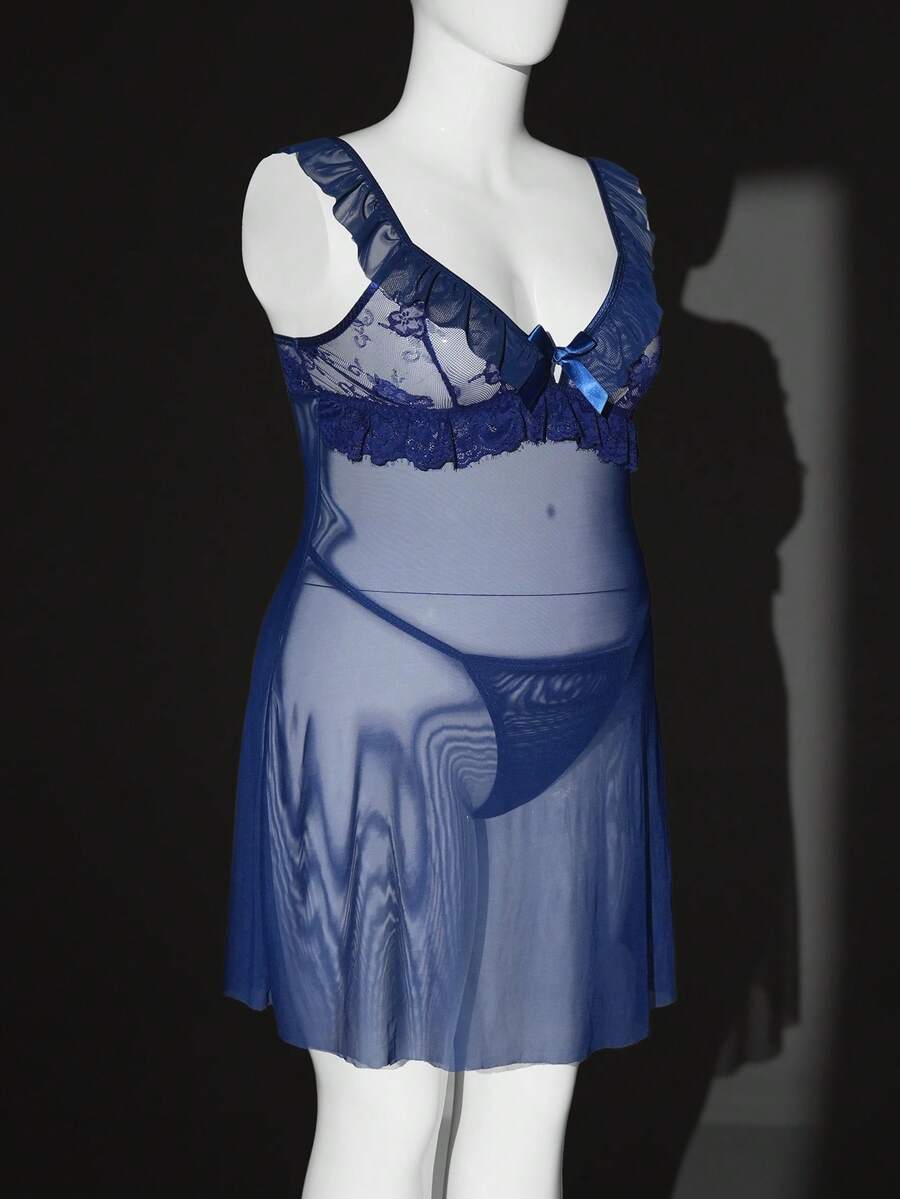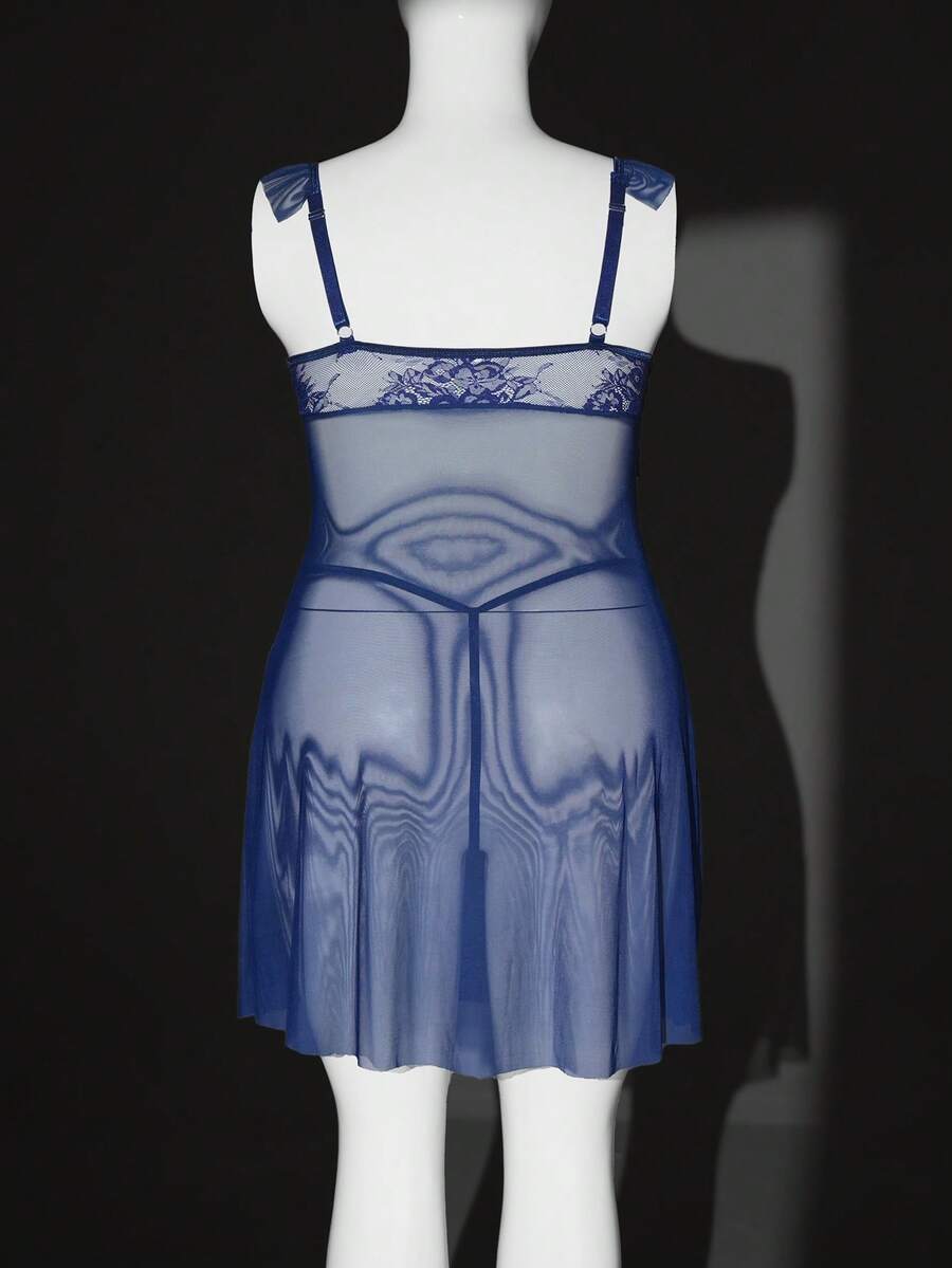 2pcs Plus Size Sexy Lace Patchwork Sling Dress