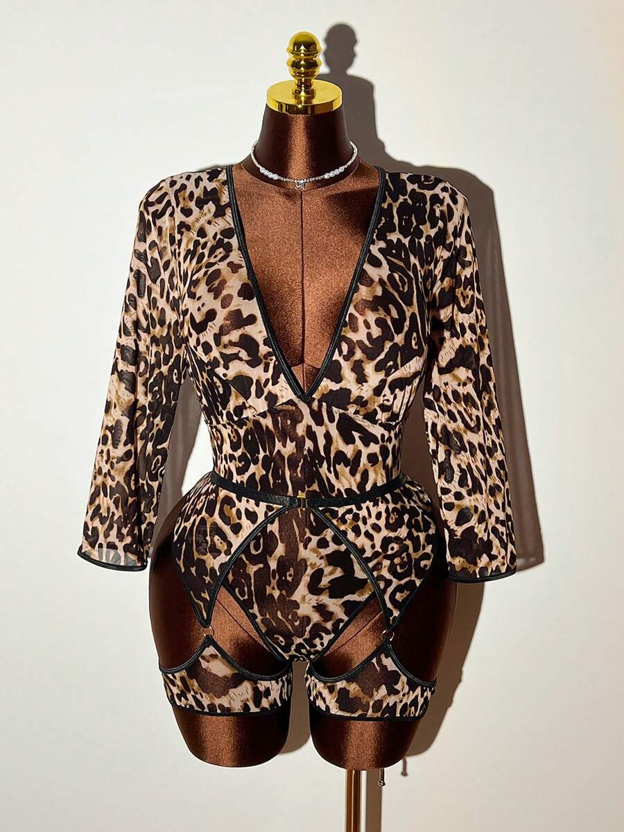 2pcs Plus Size Wireless Sexy Bodysuit Lingerie Set