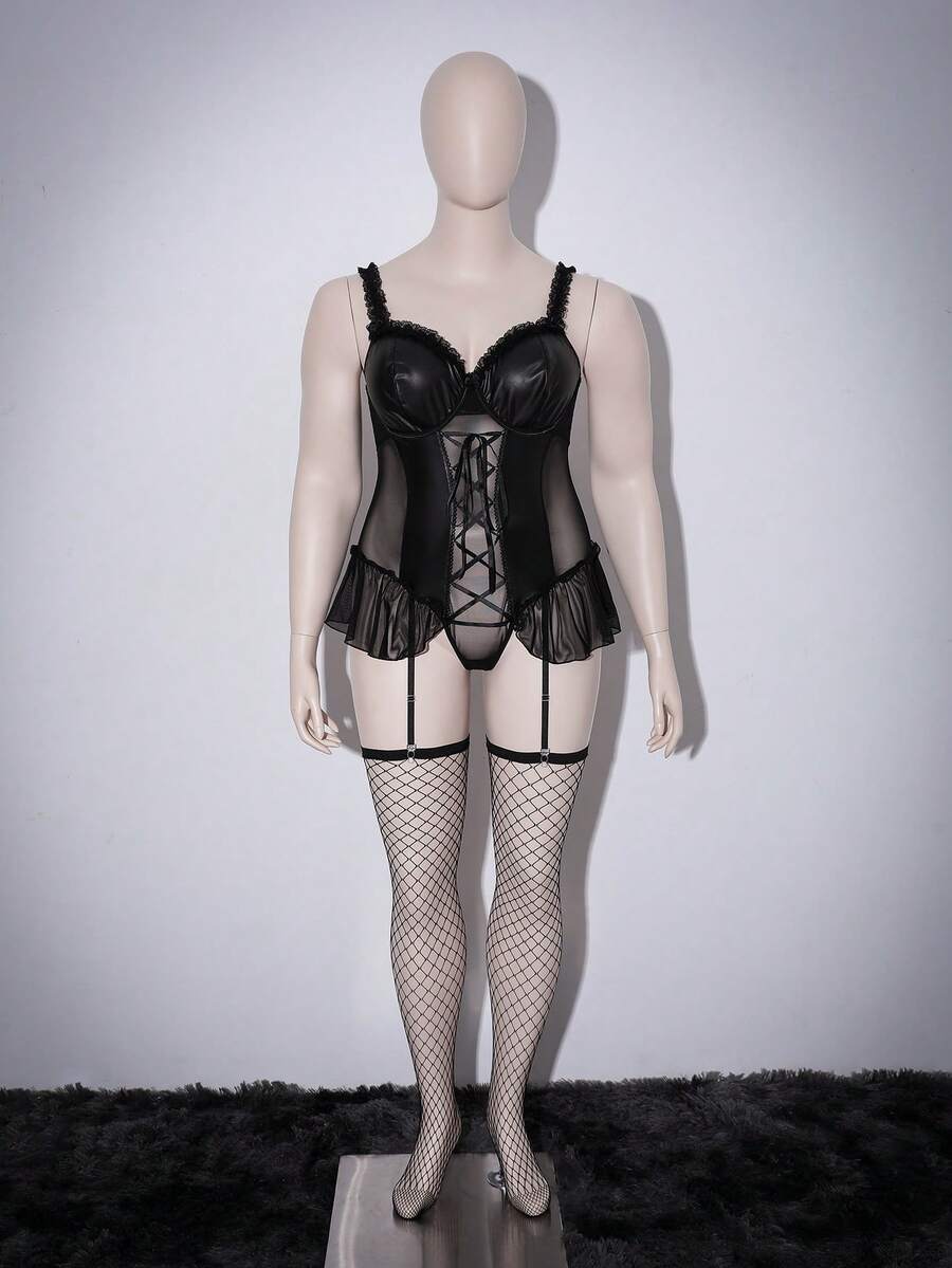 AltCore 3pcs/Set Women's Sexy PU Lace Patchwork Lingerie Set