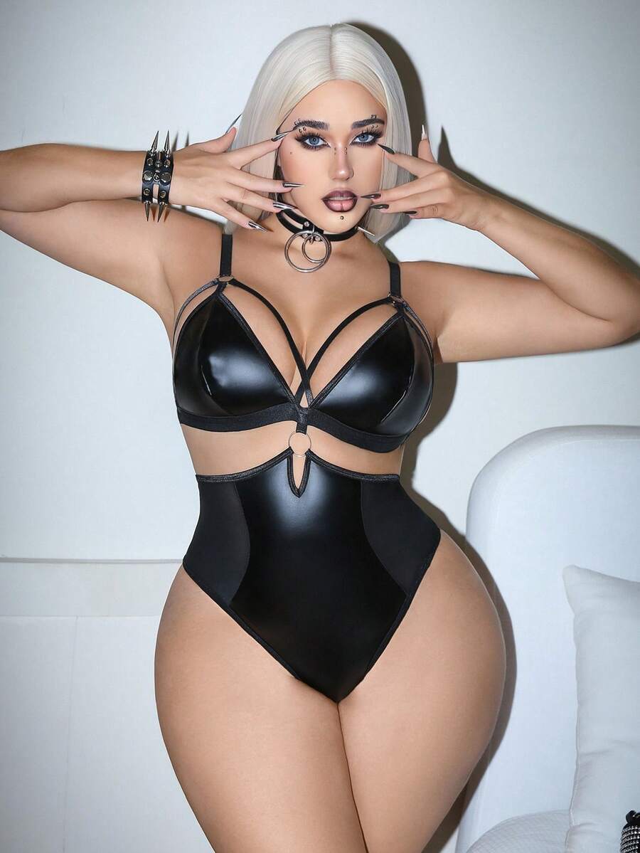 AltCore Sexy Series PU Leather Patchwork Plus Size Jumpsuit