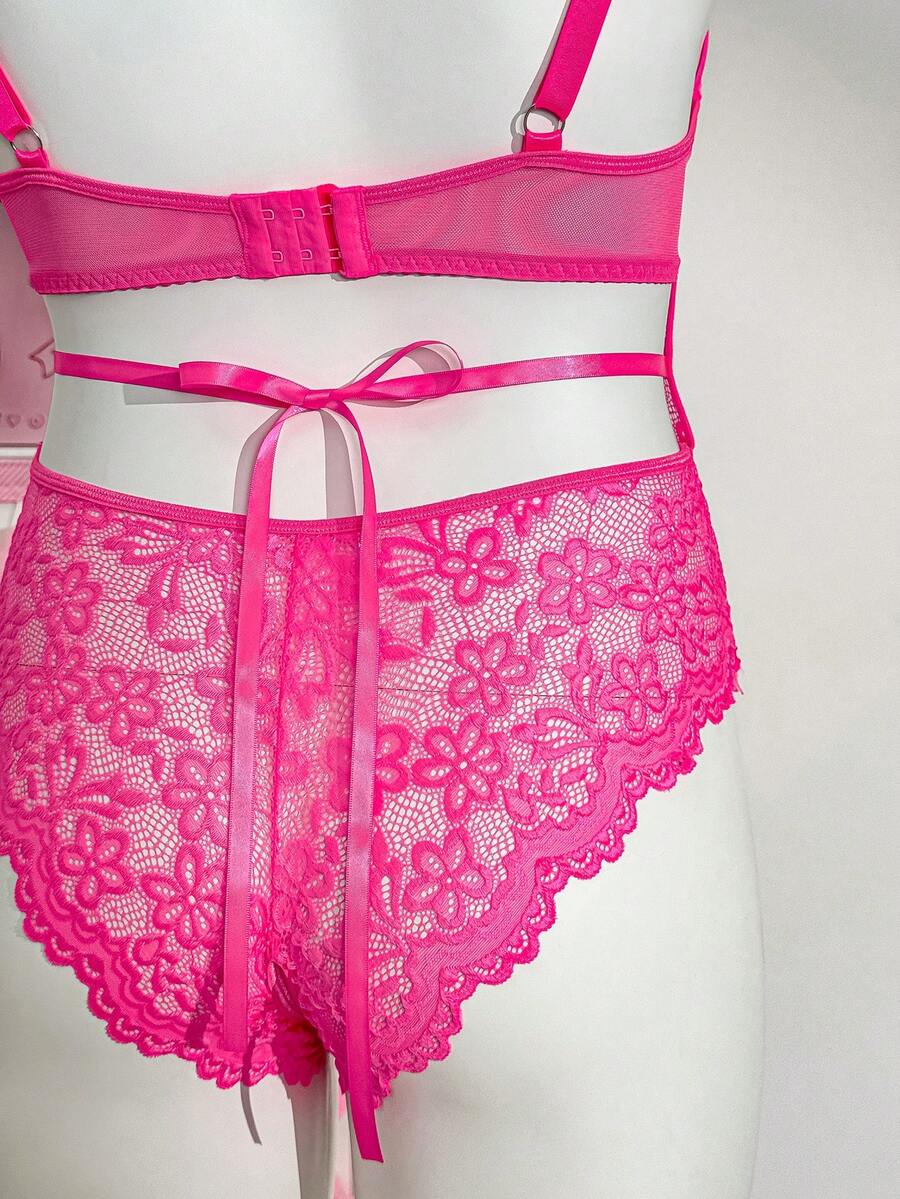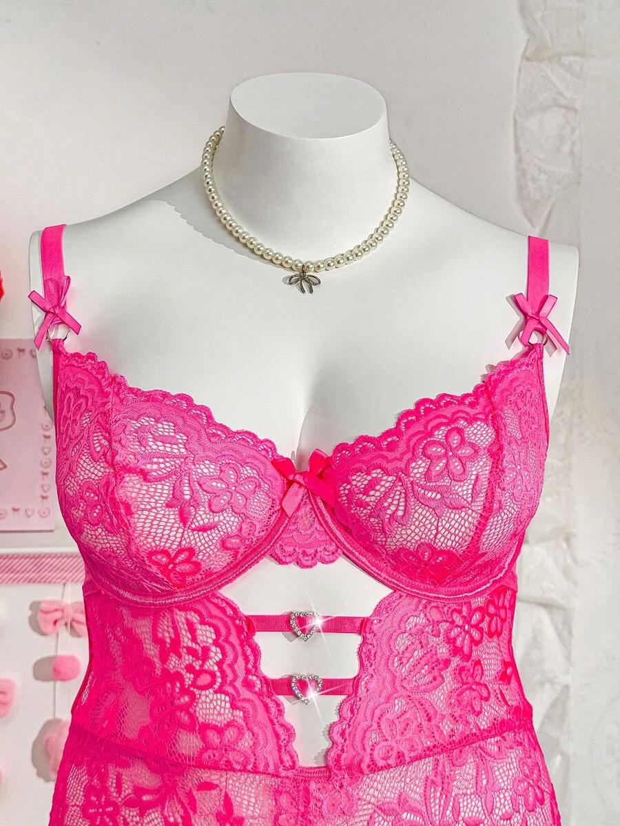 PetitDoll Sexy Lace Sheer Deep V Hollow Rhinestone Bow Seamless Jumpsuit, Plus Size