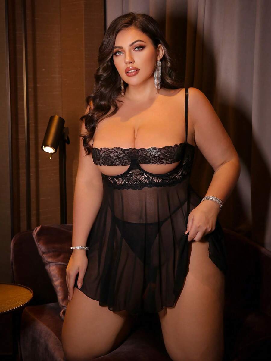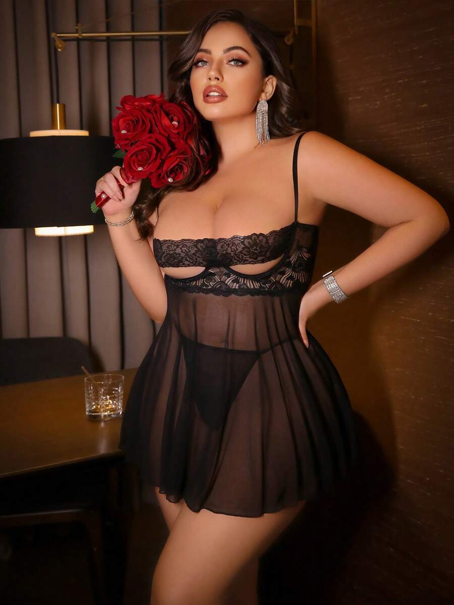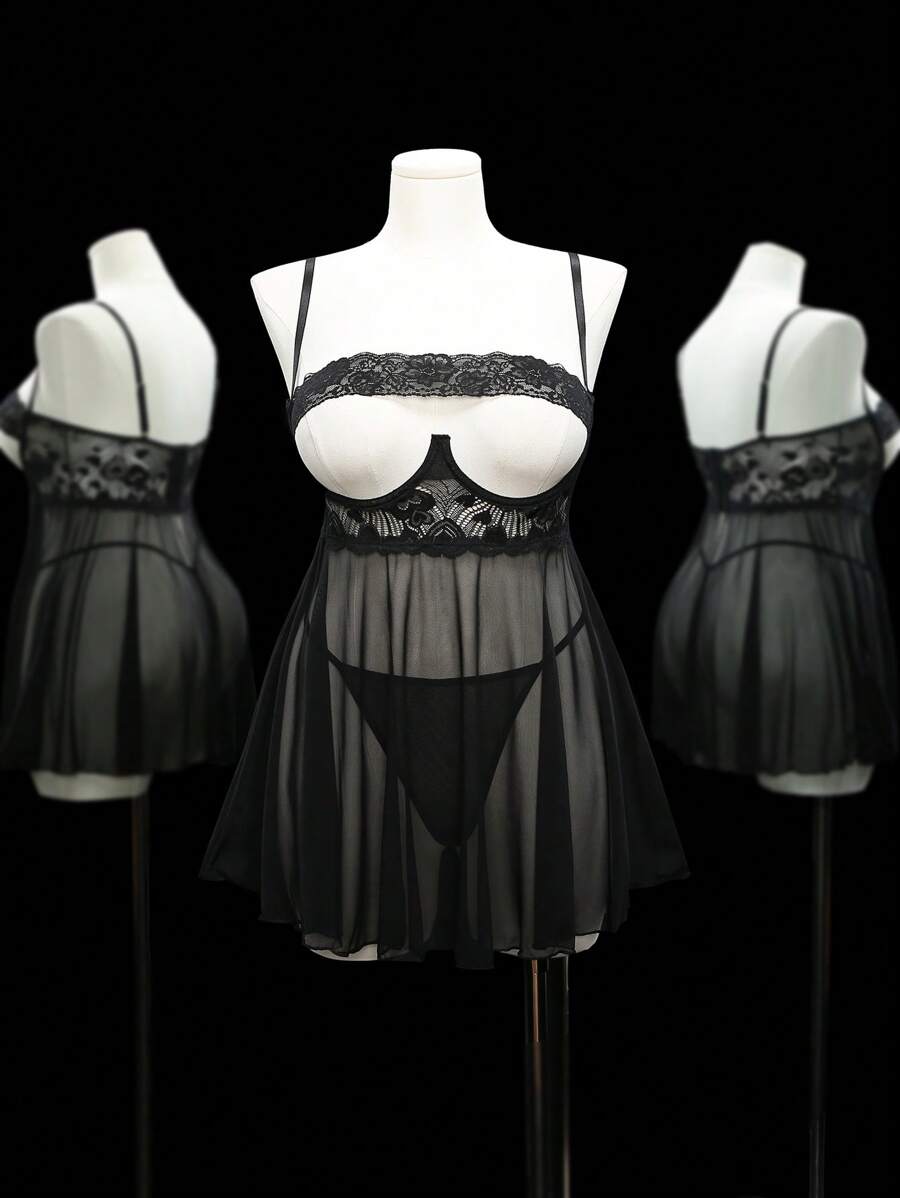 Details: Contrast Lace. Details: Sheer. Neckline: Spaghetti Strap. Pattern Type: Halloween. Style: Classic Sexy. Straps Type: Adjustable Straps. Color: Black. Type: Babydolls. Panty Type: V-strings. Rise: Low Rise. Number of Pieces: 2 Piece Set. Festivals: Halloween. Scenes: Private Party. Fabric Elasticity: High Stretch. Care Instructions: Hand wash, do not dry clean. Pants&Dresses Composition: 95% Polyester, 5% Elastane. Pants Material: Mesh Fabric. Dresses Sleeve Length: Sleeveless. Dresses Length: Short.