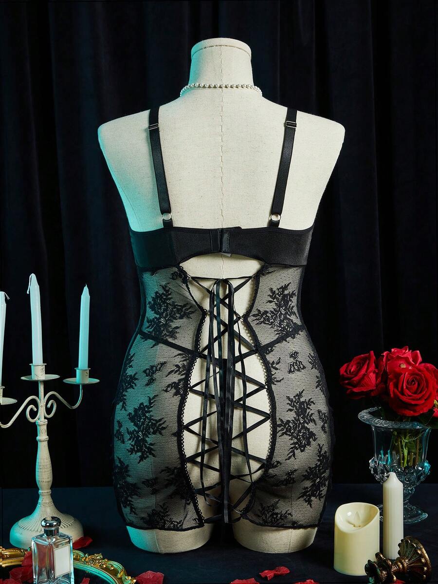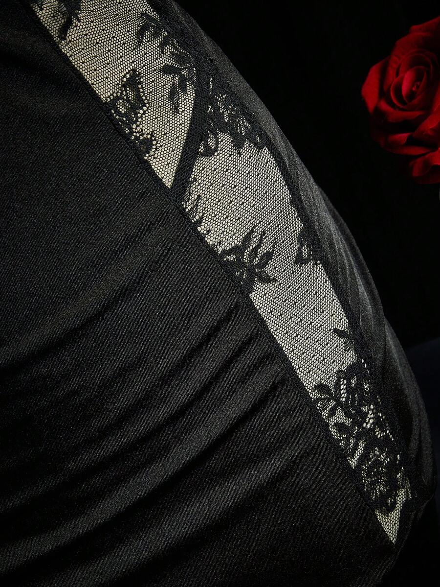 SpicyHot 2pcs Plus Size Satin Contrast Lace Nightgown Set