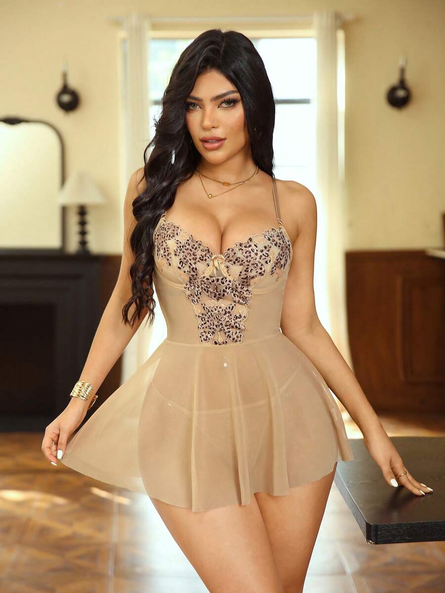 2pcs Sexy Mesh Nightgown Set (With Underwire, G-String) For Women