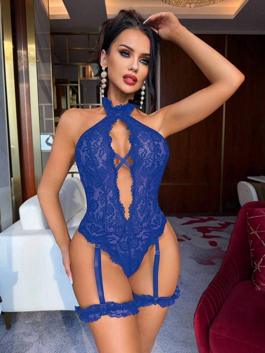 Details: Backless. Contrast Lace. Sheer. Pattern Type: Baroque. Style: Classic Sexy. Color: Hot Pink. Type: Babydolls. Neckline: Halter. Number of Pieces: 3 Piece Set. Bra Type: Teddies. Panty Type: V-strings. Rise: Mid Rise. Wires: Wireless. Underwear & Sleepwear Users: Couple. Festivals: Halloween. Scenes: Private Party. Fabric Elasticity: Medium Stretch. Care Instructions: Hand wash, do not dry clean. Sheer: Yes. Bodysuits Composition: 89% Polyamide, 11% Elastane. Bodysuits Sleeve Length: Sleeveless. Bodysuits Material: Lace. Bodysuits Body: Unlined.