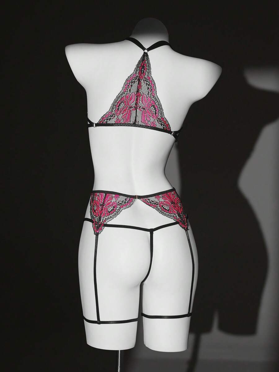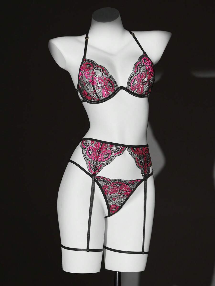 Seduluxe 3pcs/Set Women's Lace Sexy Lingerie Set, Valentine's Day