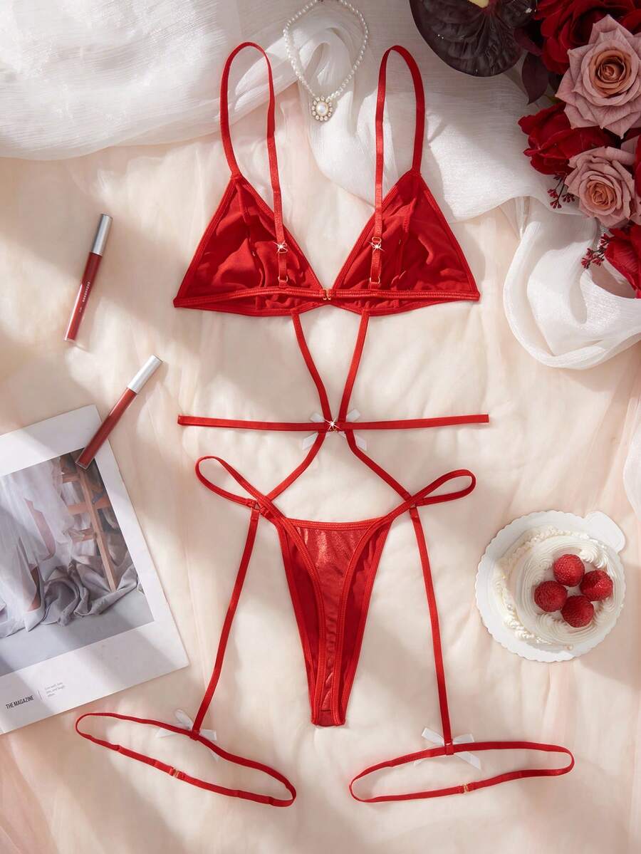 Women's Solid Color Jumpsuit, Backless Spaghetti Strap Nurse Costume Set, Hollow Circle Decor Spaghetti Strap, Sexy Lingerie Outfit